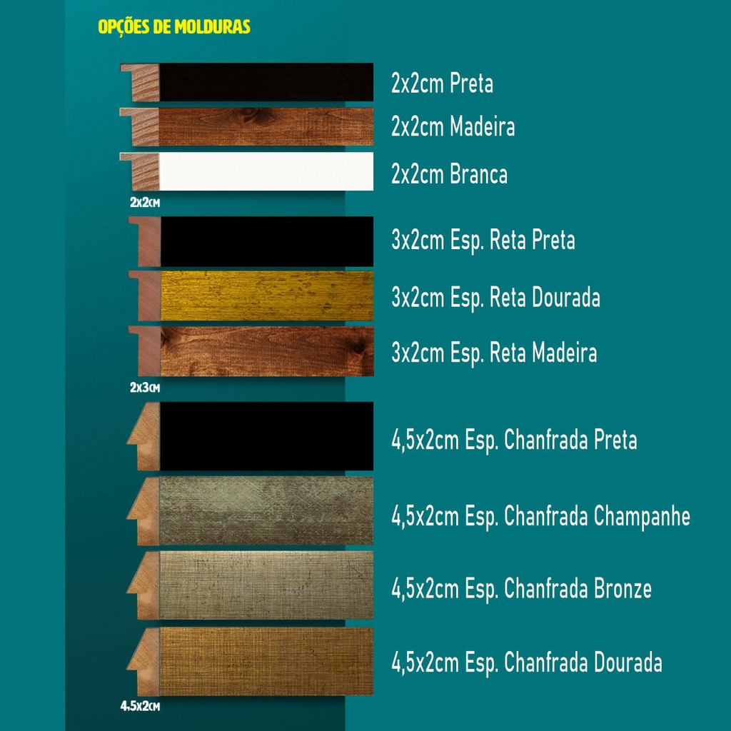 Moldura em madeira tratada, imagem com impressão digital em alta resolução com fundo em MDF.